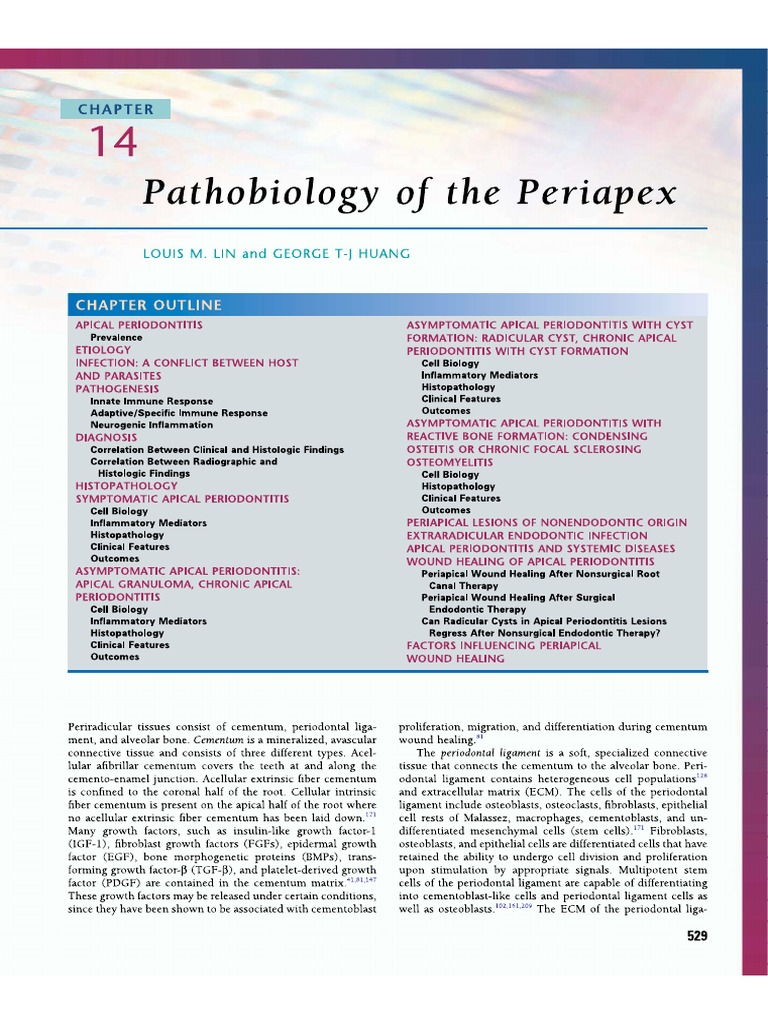 There may be slight widening of the pdl. It appears as an apical radiolucency and does not present clinical symptoms eg there is no pain on percussion or palpation. Chronic apical abscess is an inlammatory reaction to pulpal infection and necrosis characterized by gradual onset. Periapical periodontitis or apical periodontitis ap is an acute or chronic inflammatory lesion around the apex of a tooth root most commonly caused by bacterial invasion of the pulp of the tooth.