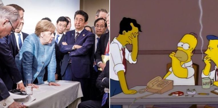 Lachen Met Spontane Ontmoeting Merkel En Trump Op G7 Top Hier