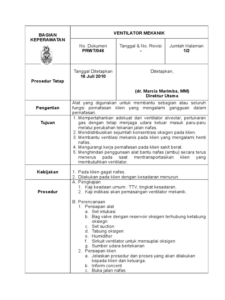 Doc Ventilator Mekanik Copy Rachmadan Syah Academia Edu