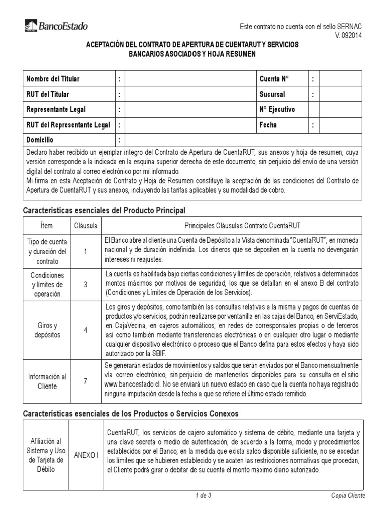 Contrato Cuentarut Del Bancoestado Bancario Business Prueba