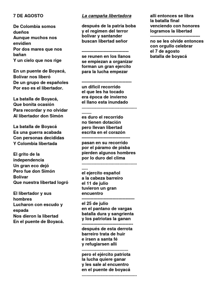 Coplas A La Batalla De Boyaca Batalla De Boyaca Boyaca Batallas