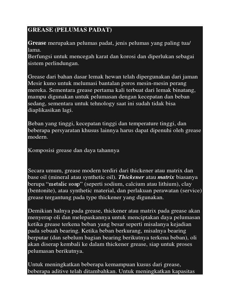 Macam Macam Grease Lubrication Pelumas Sains Teknologi Dan Bisnis