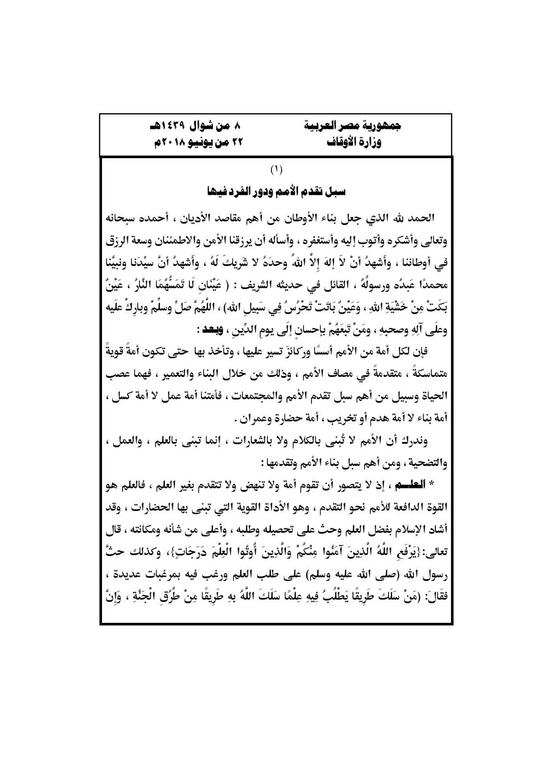 خطبة الجمعة القادمة لوزارة الاوقاف المصرية Pdf خطبة الجمعة مكتوبة