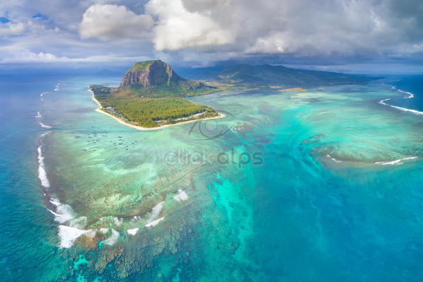 Pop Aerial View Of The Underwater Waterfall And Le Morne Brabant